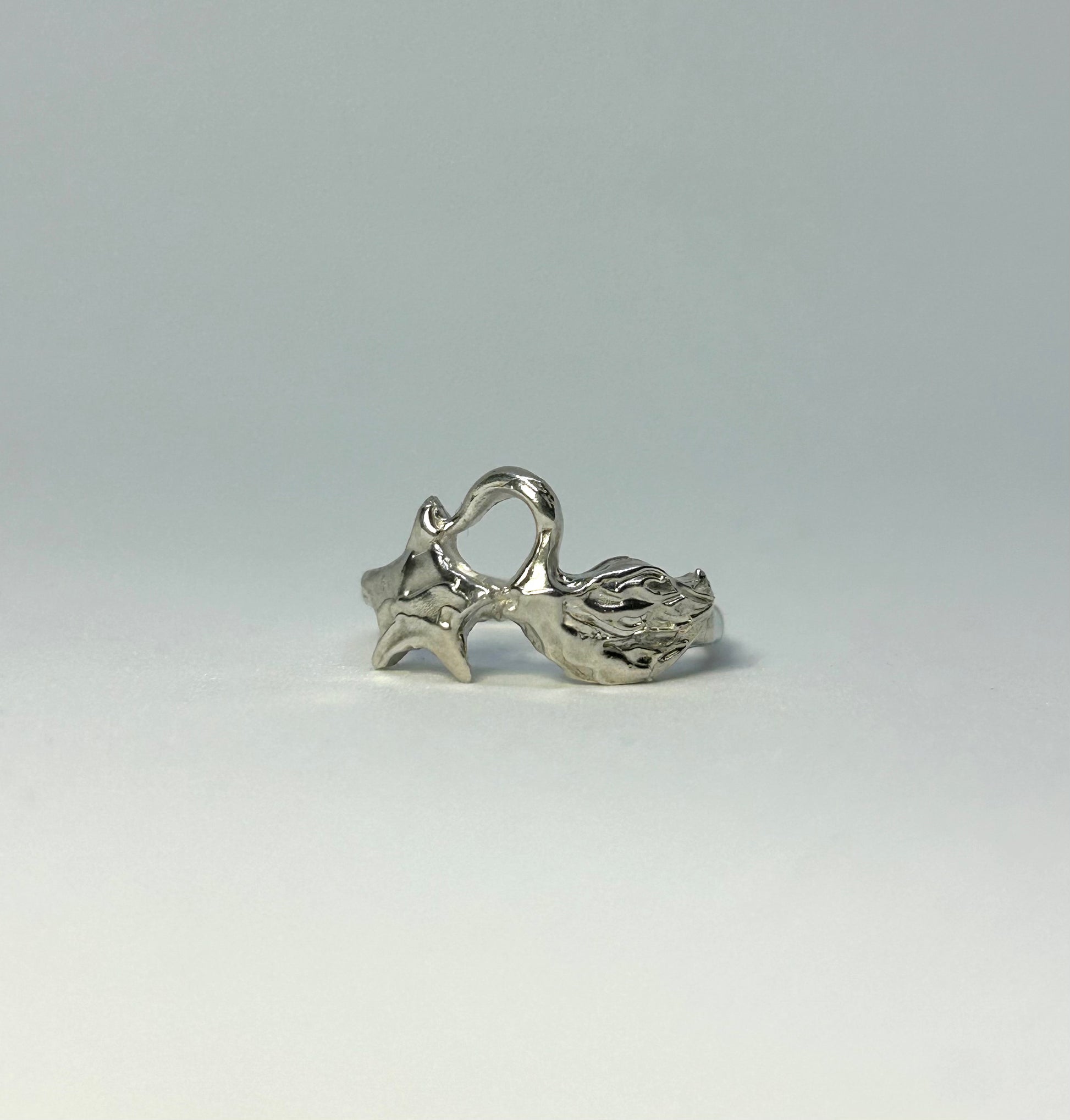The Odette ring brings together two powerful symbols in a serene, sculptural design: a hand-carved swan gliding toward a softly detailed star. Crafted in solid sterling silver, its gentle curves and flowing silhouette create a sense of quiet movement, as if the design were captured in a moment of celestial stillness.